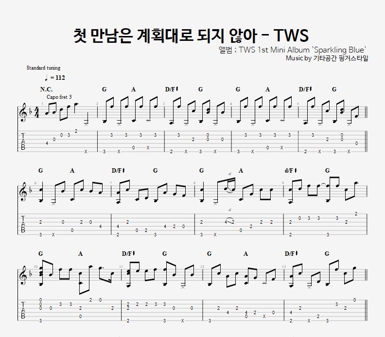 - 핑거스타일기타 편곡악보로, 타브악보가 'PDF파일' 로 제공됩니다.
