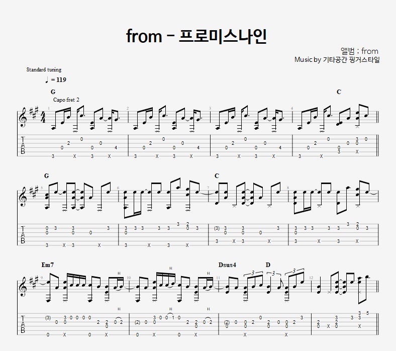 - 핑거스타일기타 편곡악보로, 타브악보가 'PDF파일' 로 제공됩니다.