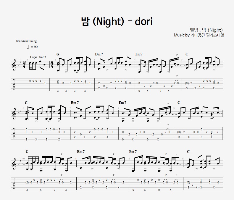 - 핑거스타일기타 편곡악보로, 타브악보가 'PDF파일' 로 제공됩니다.