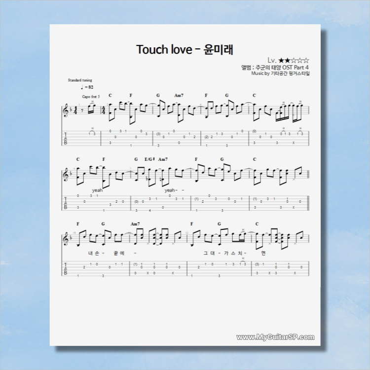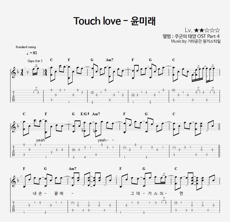 - 핑거스타일기타 편곡악보로, 타브악보가 'PDF파일' 로 제공됩니다.