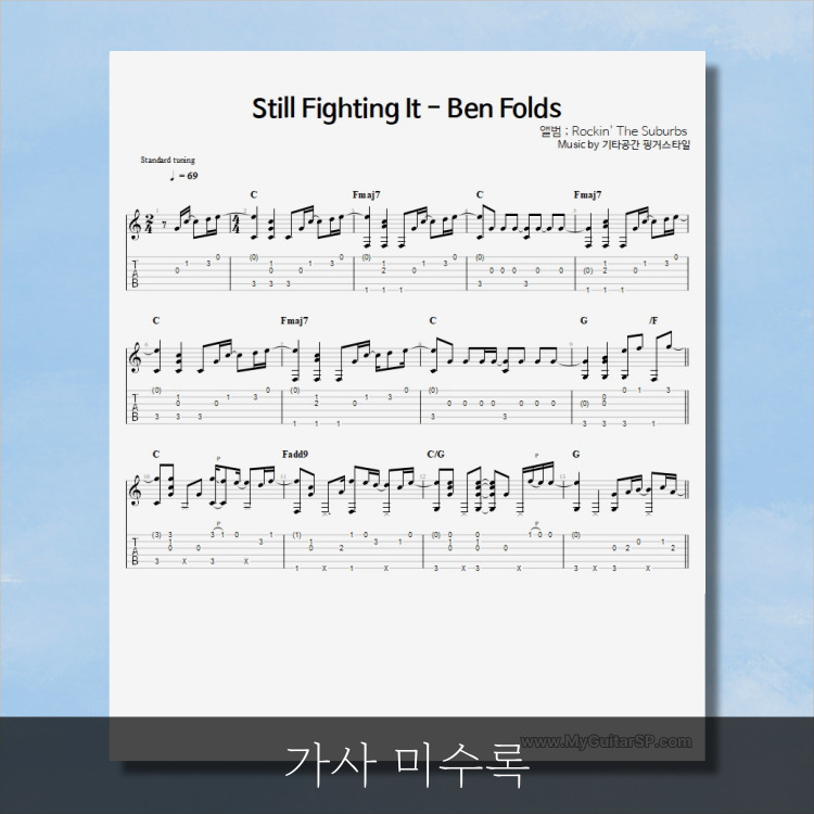 - 핑거스타일기타 편곡악보로, 타브악보가 'PDF파일' 로 제공됩니다.
