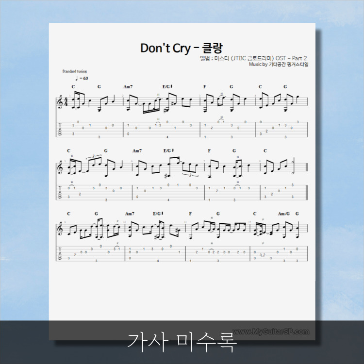 - 핑거스타일기타 편곡악보로, 타브악보가 'PDF파일' 로 제공됩니다.