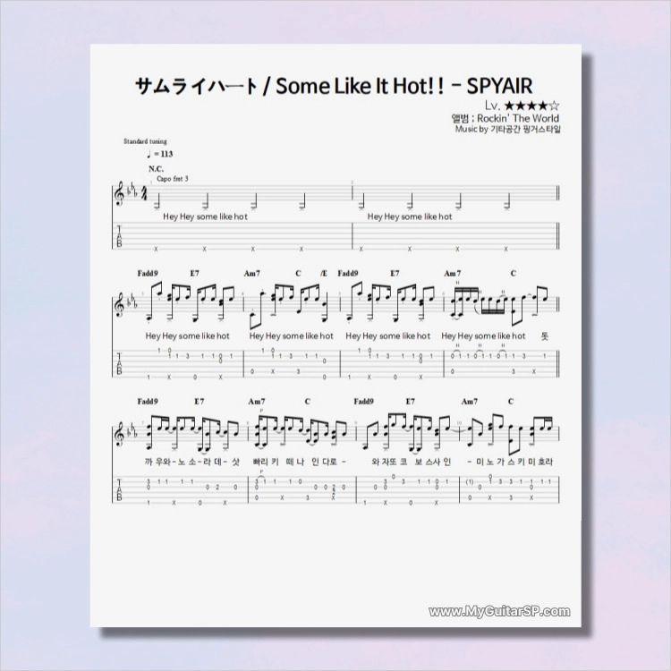 - 핑거스타일기타 편곡악보로, 타브악보가 'PDF파일' 로 제공됩니다.