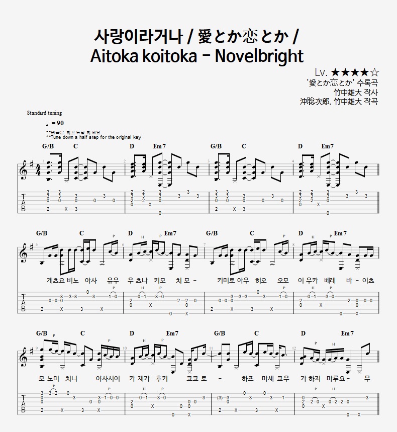 **연주 편의상 Gbkey를 Gkey로 조옮김, 원곡은 하프튜닝 하세요