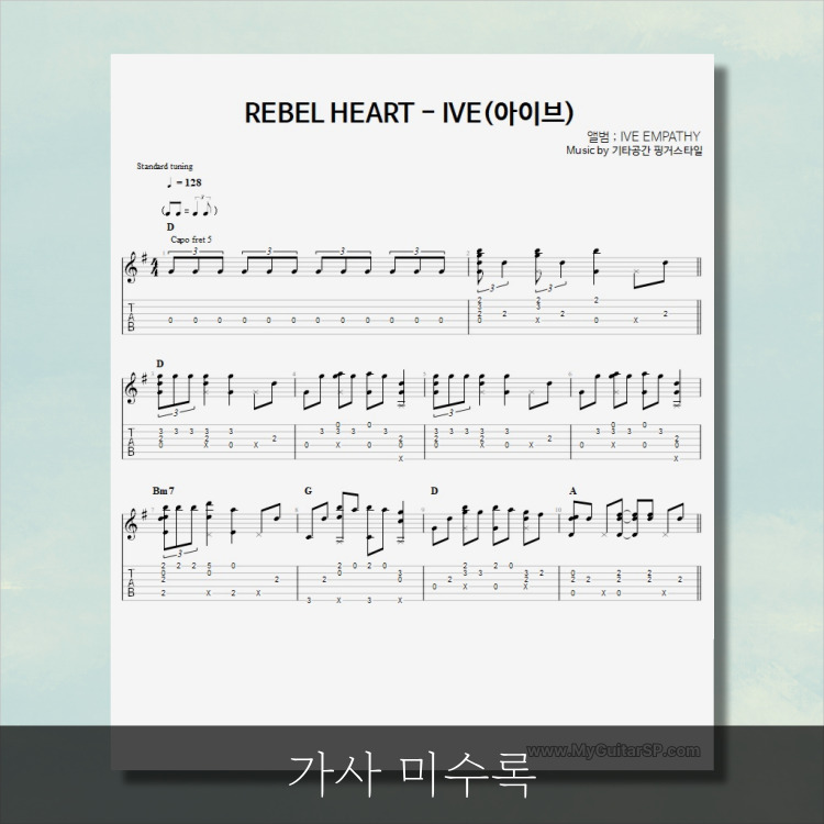 - 핑거스타일기타 편곡악보로, 타브악보가 'PDF파일' 로 제공됩니다.